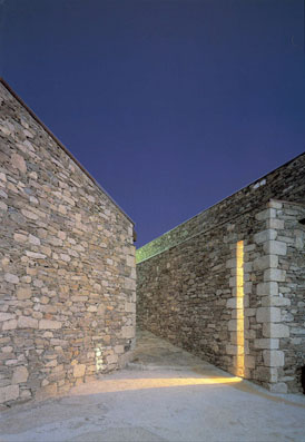 Una sucesión de pequeñas plazas y recorridos. Coser el tejido de la trama original separando el programa en dos edificios: la sala de reuniones, de uso esporádico y cultural y el ayuntamiento y clínica, de uso permanente, la realidad cotidiana de la alcaldía. Una dialéctica entre los dos edificios: el ayuntamiento y clínica, horizontal y continuo, formando el patio exterior y los despachos interiores un espacio único. Y como contraposición, el centro de reuniones, el espacio de la luz vertical. La sala adaptando su sección a la topografía del terreno, en contraste con la horizontalidad de la cubierta.