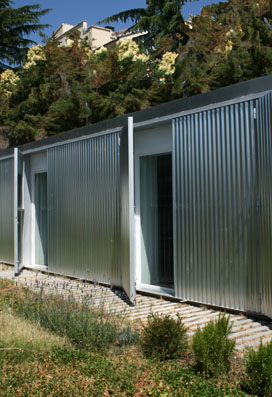Se rehabilita como estudio de arquitectura una nave de 3m de ancho y 20 de largo. Se plantea una piel exterior de chapa galvanizada ondulada que unifique todo el alzado y sirva de protección a los huecos de iluminación y ventilación. El movimiento de dicha piel posibilita la variación del cerramiento, desde una posición hermética y cerrada hasta una posición totalmente abierta, pasando por varios estados intermedios.